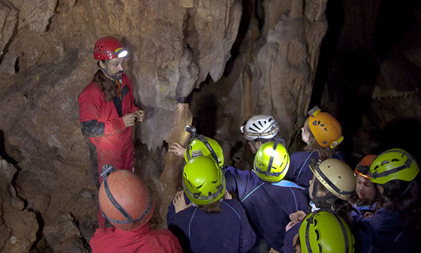 Junto al C.I. de la Fauna Glacial, se encuentra una pequeña cavidad en la que realizamos visitas espeleológicas con grupos escolares. En esta actividad se explican, de forma clara y sencilla, algunos conceptos sobre geomorfología, paleontología y biología subterránea.